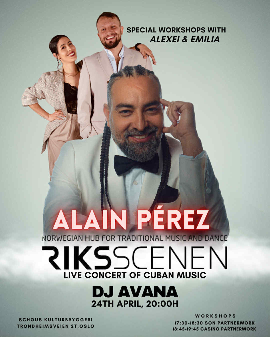 Welcome to Cuban partnerwork workshops with the international dance couple Alexei & Emília Friday 24.4 at Riksscenen